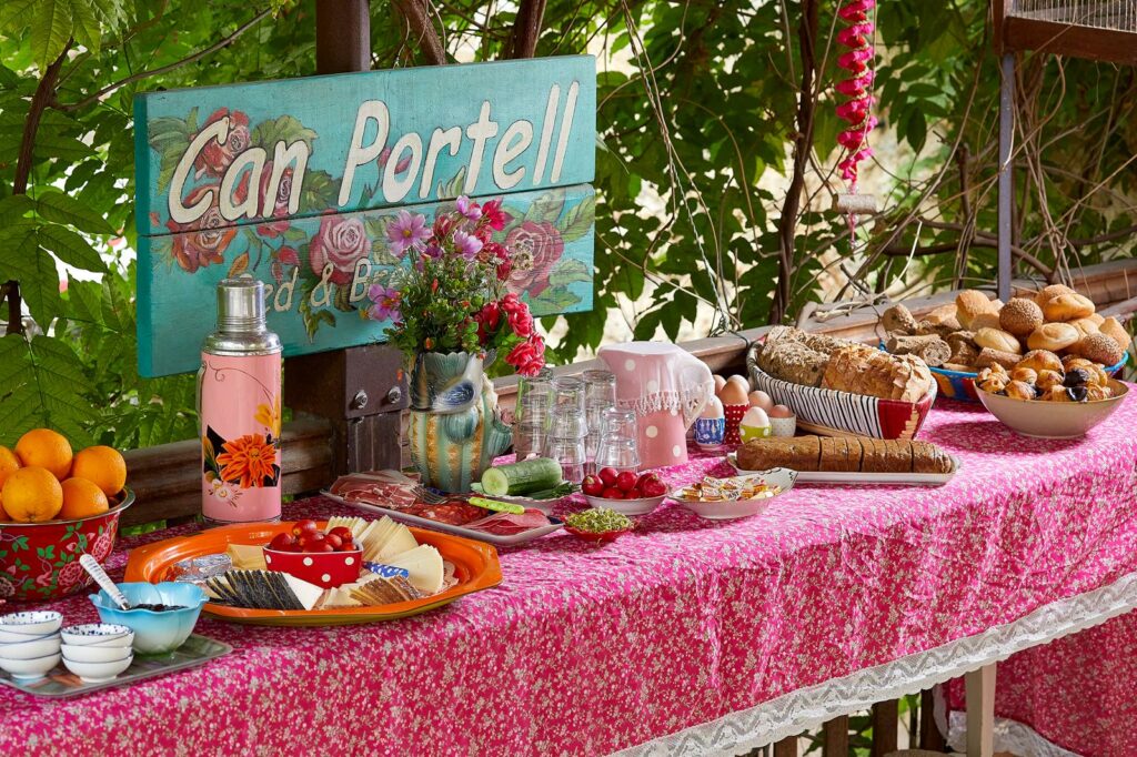 Can Portell is een prachtig landgoed dat stamt uit 1690 – een voormalige herenboederij met uitgestrekte tuinen, mooie terrasjes en… een heerlijk zwembad.